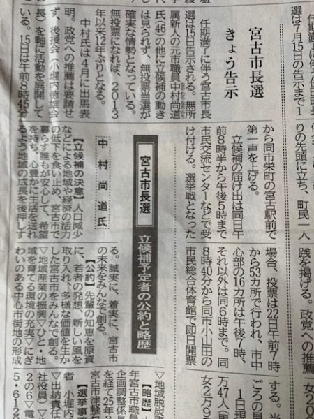 宮古市長選挙で、この1週間が楽しくなる!と思ったのですが、つまらない。