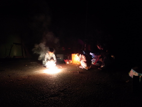 花火をやろう!と庭に集合。