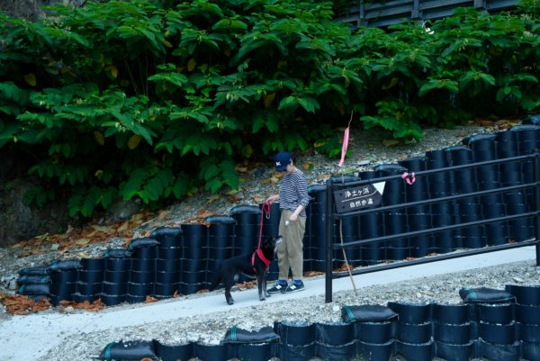 常に足下を気にしたくなるような、湧水が流れる歩道。